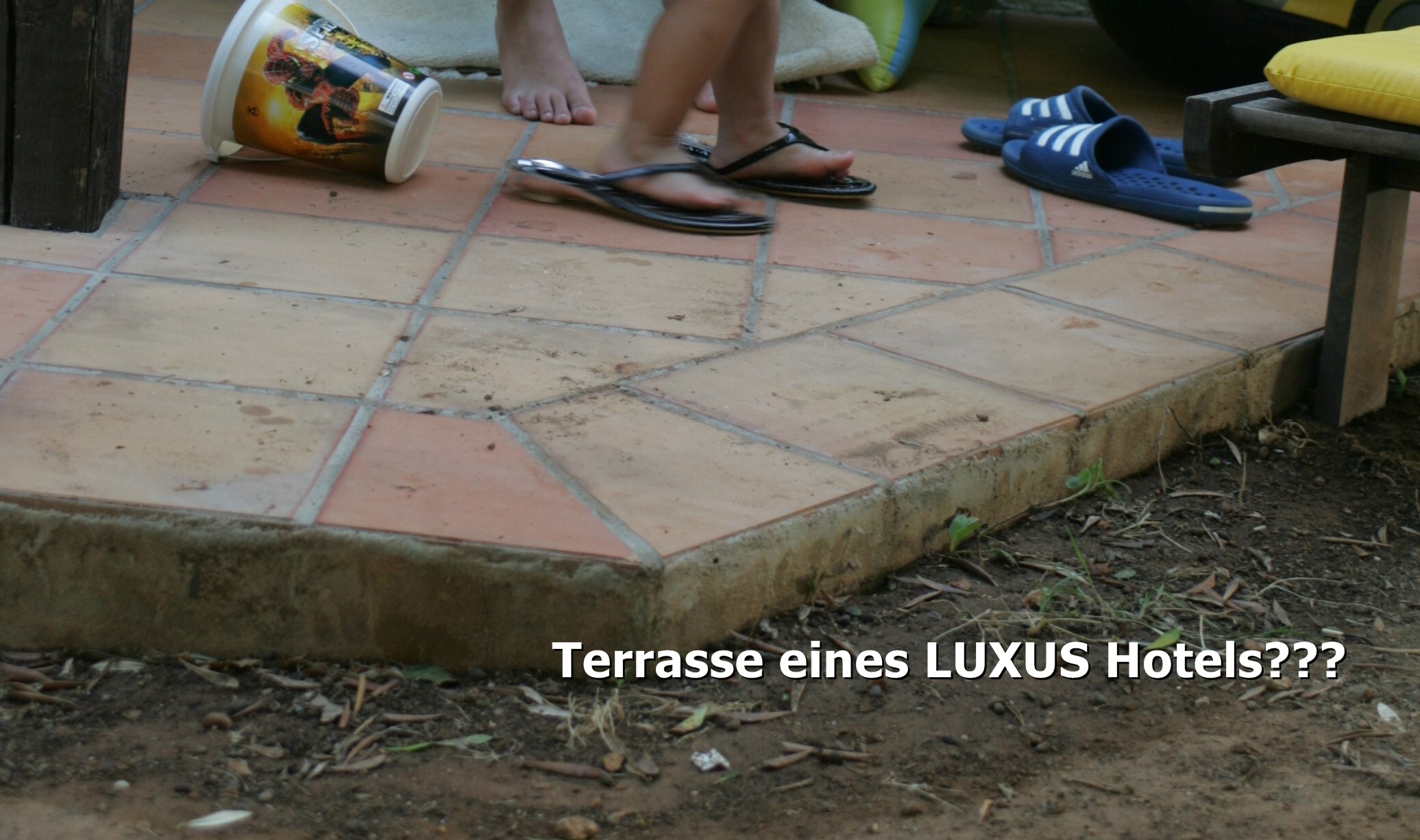 anbei) Die Terrassen sind ungepflegt, die Platten und