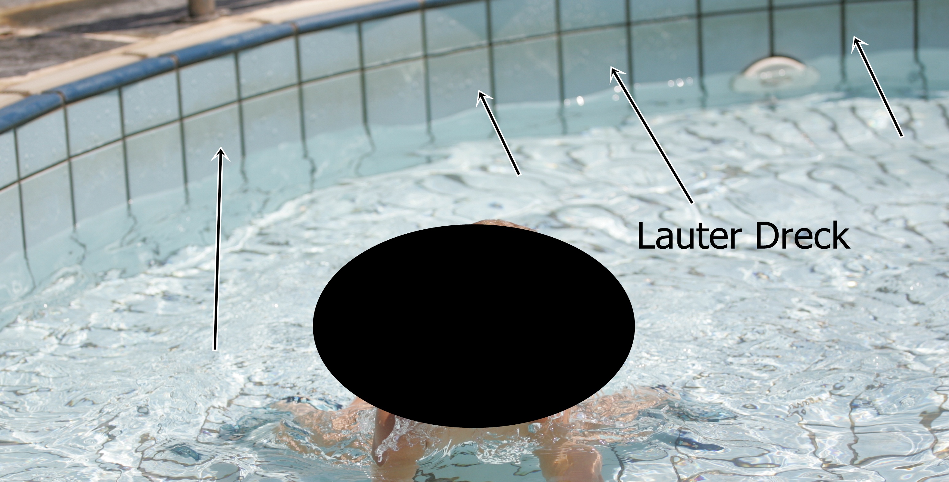 dass der Dreck vom Vortag noch einige Tage im Pool zu